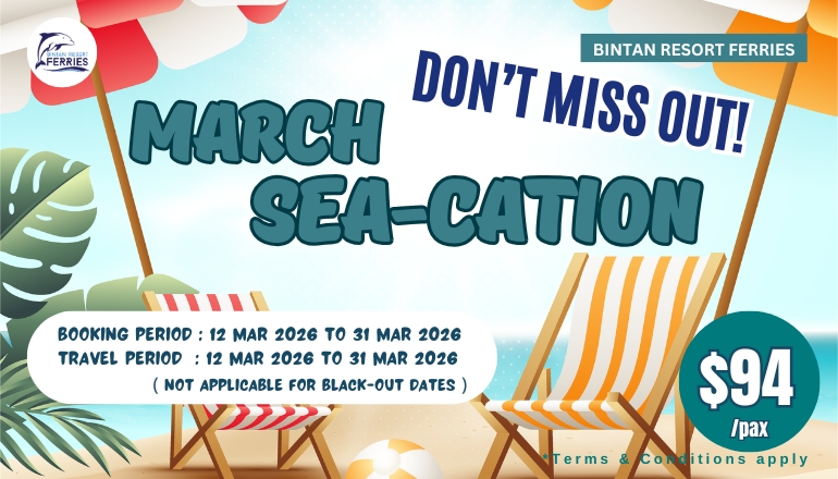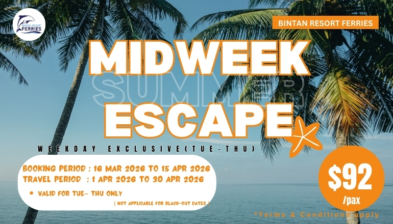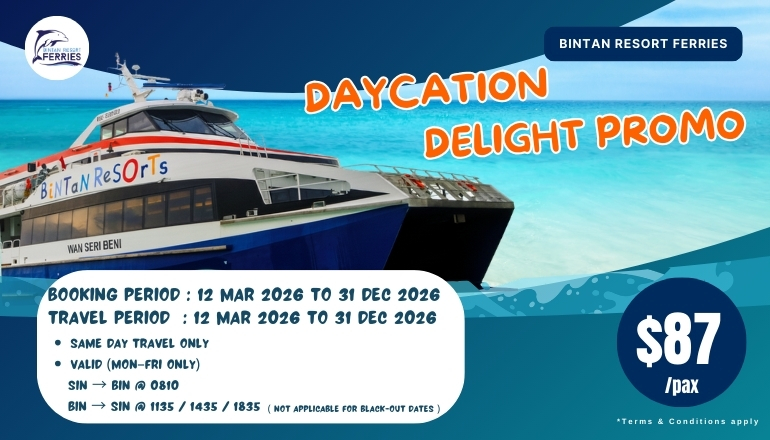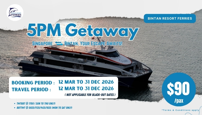 The ferry journey from TMFT to Bintan Resorts will take approximately 1 hour and 10 minutes.
