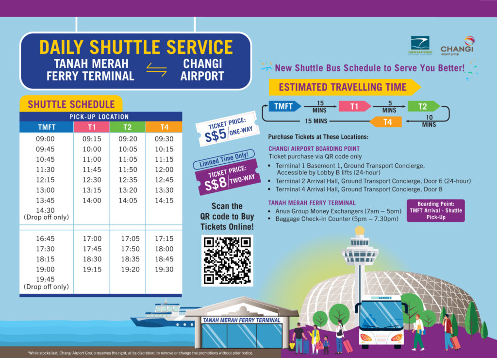 轻松便捷的巴士服务,连接樟宜机场与丹那美拉渡轮码头!